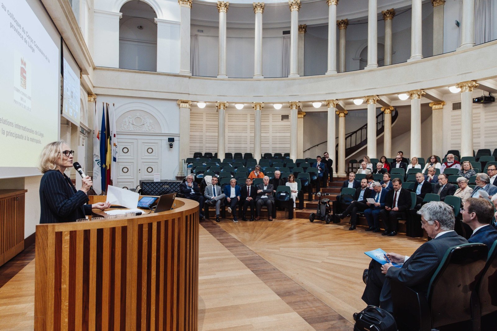 Le colloque « De la principauté à la Métropole », organisé par le Corps Consulaire de la province de Liège, s’est déroulé le 7 mai à la salle académique de l’ULiège. 80 personnes y ont assisté. 10 Consul(e)s Honoraires étaient présent(e)s – Autriche, Bulgarie, Croatie, Guinée Conakry, Finlande, Italie, Lettonie, Pays-Bas, Pérou, Suisse, Tunisie – ainsi qu’un représentant de l’ambassade d’Azerbaïdjan en Belgique.
