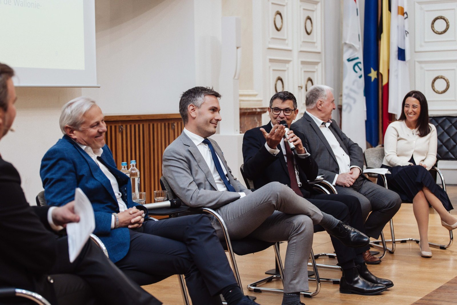 Durant la première partie de la manifestation, cinq orateurs ont alimenté la réflexion du public : Jean-Arthur Régibeau, ancien ambassadeur de Belgique en Arménie, Biélorussie, Ouzbékistan, Russie et Etats-Unis, suivi des professeurs Bruno Demoulin, Catherine Lanneau, Christian Behrendt et Philippe Destatte. Après la pause, Bernard Piette, président du Corps Consulaire de la province de Liège, a animé un débat auquel ont participé cinq témoins : Amaury Bertholomé, directeur du circuit de Francorchamps, Oriana Bertucci, responsable des relations internationales de l’ULiège, Karl-Heinz Lambertz, ancien ministre-président de la Communauté Germanophone, Laurent Jossart, directeur de Liège-Airport, et Stefano Pace, directeur de l’OPRL. Aucun n’est originaire de Liège mais tous ont souligné ses atouts, sa qualité de vie et la chaleur de son accueil.